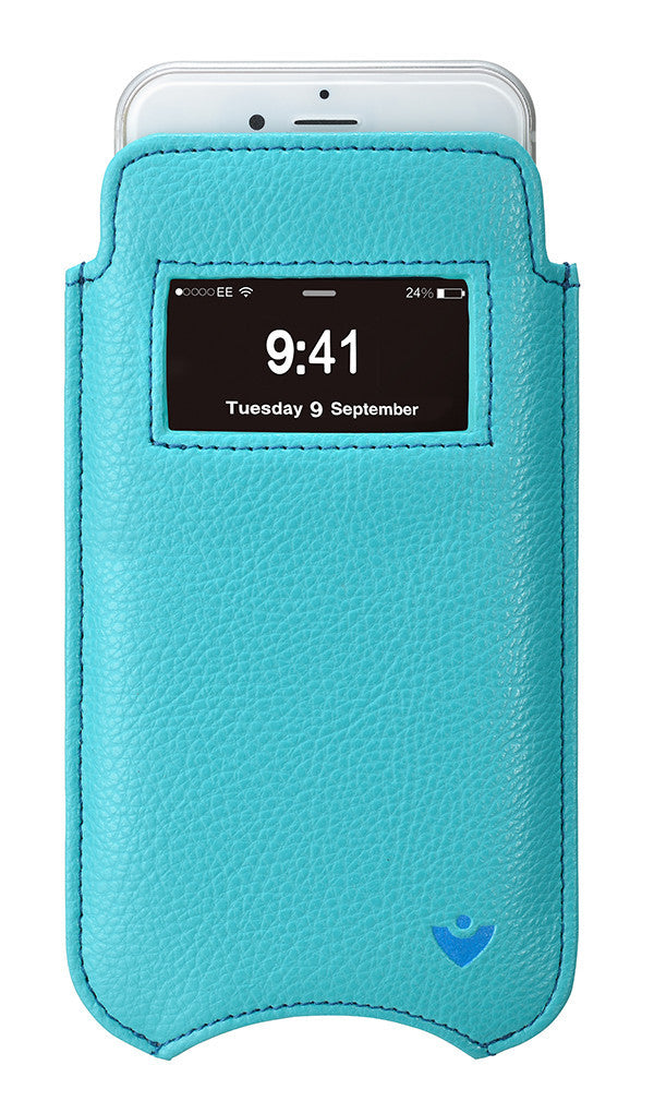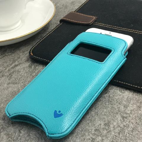 Apple iPhone 12 Pro Max Wallet Case in Teal Blue Vegan Leather | Screen Cleaning Sanitizing Lining | smart window
