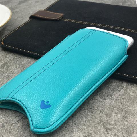 iPhone 8 / 7 Case in Blue Faux Leather | Screen Cleaning and Sanitizing Lining.