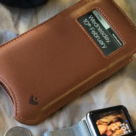 iPhone 8 Plus / 7 Plus Case in Tan Napa Leather | Screen Cleaning Sanitizing Lining | Smart Window.