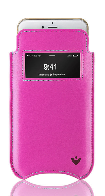 Apple iPhone 13 Pro Max Sleeve Case | Pink Leather | Screen Cleaning Sanitizing Lining | Smart Window