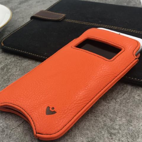 NueVue iPhone 11/iPhone XR Case Faux Leather | Flame Orange | Sanitizing Screen Cleaning Case