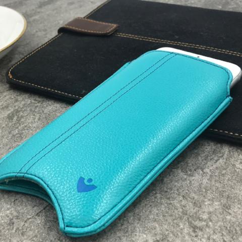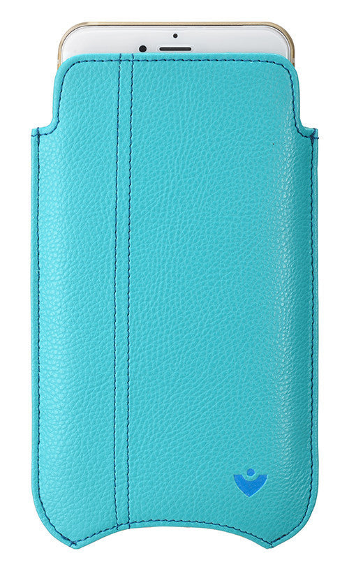 iPhone 8 Plus / 7 Plus Sleeve Case in Blue Faux Leather | Screen Cleaning Sanitizing Lining.