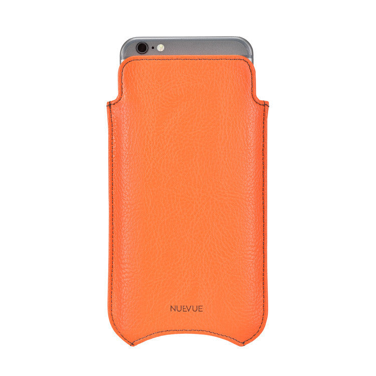 iPhone 8 Plus / 7 Plus Pouch Case in Orange Faux Leather | Screen Cleaning and Sanitizing Lining | Smart Window