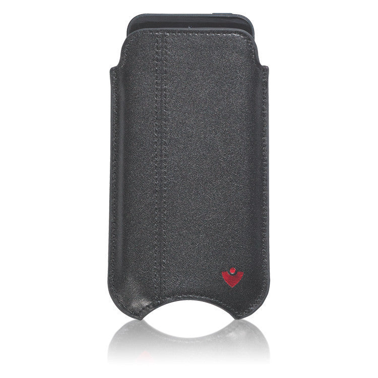 iPhone SE-1st Gen, 5 Pouch Wallet Case in Black Napa Leather | Screen Cleaning Sanitizing Lining